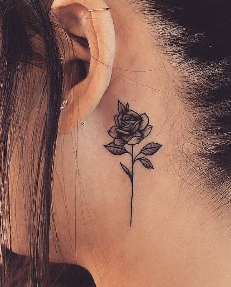 Идеи татуировки стебля и розы на шее Источник: @livefreetattoo через Instagram