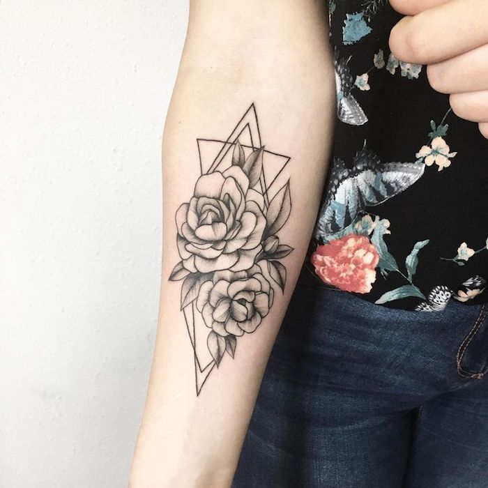 Эта татуировка с розовым цветком — хороший дизайн для женщин, которые хотят сделать татуировку на предплечье чем-то красивым и привлекательным. Цветочный дизайн кажется большим, но также красочным и мягким. Тату также отлично смотрится с различными аксессуарами для рук, особенно с цветочными.