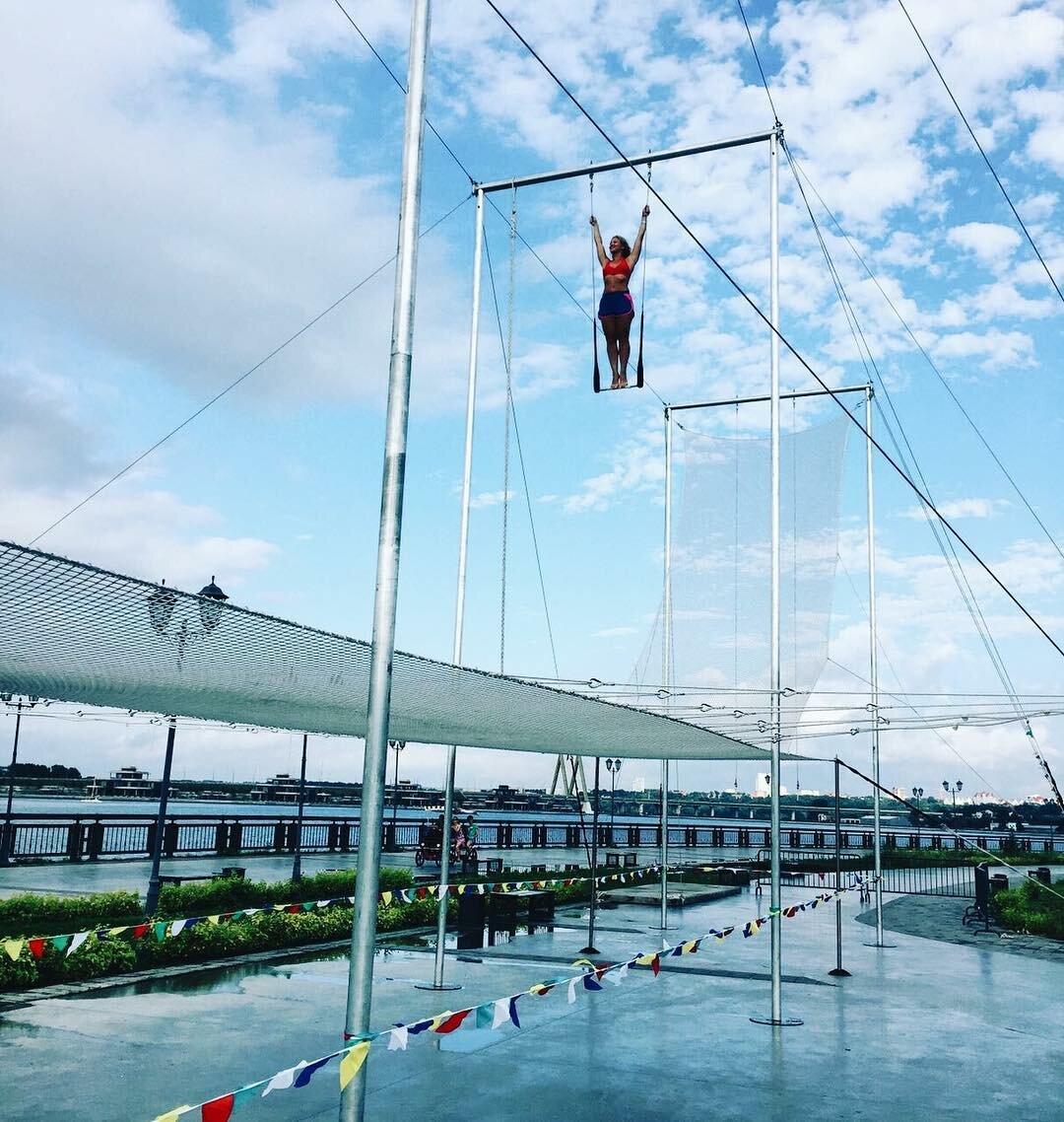 Конструкция высотой 10 метров и длиной 30 метров создана как для профессиональных воздушных гимнастов, так и для желающих полетать в первый раз.