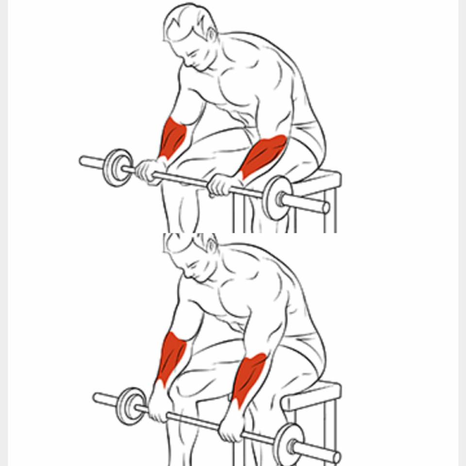 Сгибание рук со штангой ладонями вниз: 2 подхода по 5 повторений