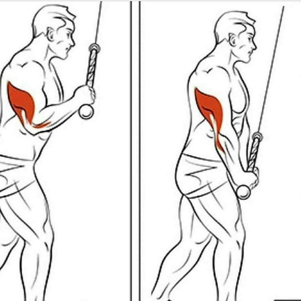 В работе: изолирующее упражнение, которое нацелено на проработку всех трех головок трицепса
