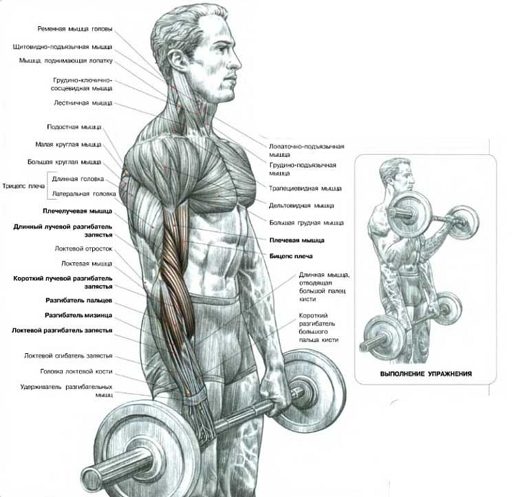 - Для этого движения обычно используется более легкий вес из-за его ограниченного диапазона движения и интенсивной концентрации на одной мышце.