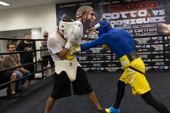 Потом я возвращаюсь и иду спать после еще одного приема пищи. К 6 часам вечера я готовлюсь к походу в тренажерный зал. Тренировка состоит из бокса на пару часов: спарринг, работа на мешке. После этого я работаю с моим тренером на лапах в течение часа или больше: все зависит от плана тренировки. Тренировочный день крайне регламентирован, но по мере приближении даты боя, я могу убрать утреннюю тренировку и заниматься только днем и вечером.