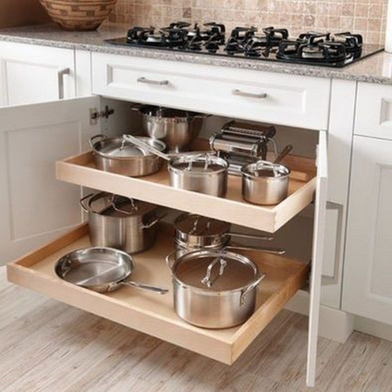 Почему бы не использовать пространство в цоколе для хранения противней, форм для выпечки и других плоских предметов, которыми не так часто пользуетесь.