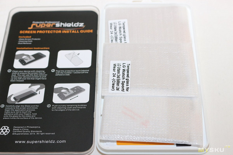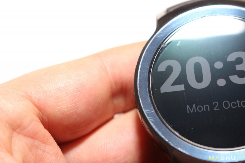 Я раздумывал, клеить стекло или нет, так как родное очень приятное и не оставляет отпечатков. Но таки наклеил дополнительное хотя бы на первое время, пока не привыкну к часам и не перестану ими цепляться. Стекло обещали толщиной 0.3 мм, оно немного выше внутренних бортиков, ни ниже внешних бортиков корпуса часов. У стекла всё отлично, грань совсем неострая и имеет закругление. Единственный минус, это диаметр стекла — он на миллиметр меньше диаметра бортиков, что усложняет наклеивание стекла ровно по центру (десять раз переклеивал).