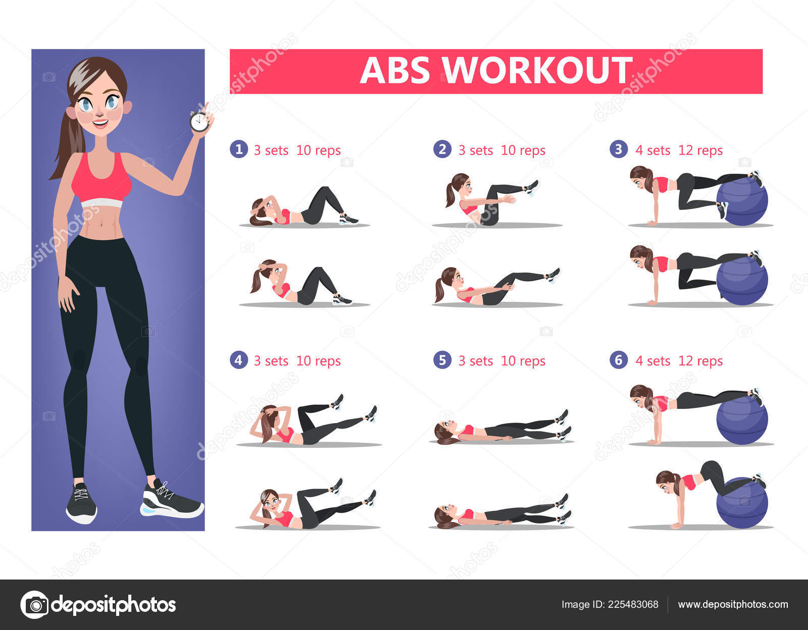 Схемы для верхней части пресса, нижней части пресса и косых мышц живота