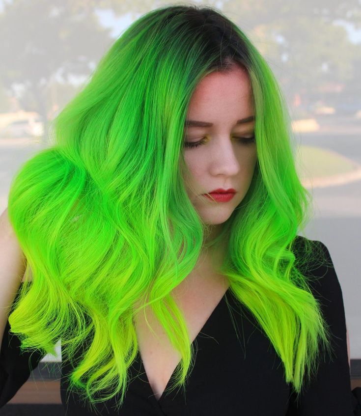 Можно использовать тот же зеленый. Или создать контраст — с помощью синего, красного, сиреневого. При условии, что они будут гармонировать с фоновым цветом волос.