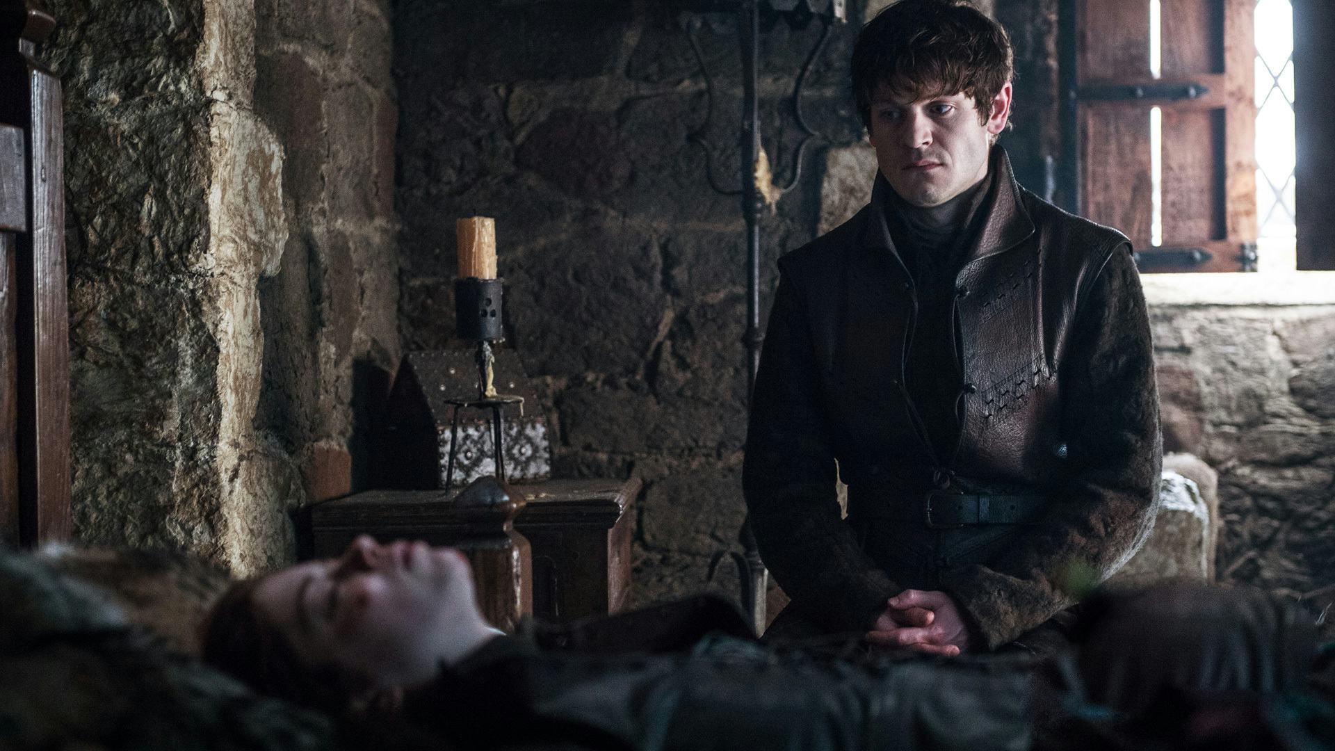 Игра престолов .Рамзи ( Иван Реон ) женился на Сансе ( Софи Тернер ) в воскресном эпизоде, унижая ее, заставляя Теона/Рика ( Алфи Аллен ) проводить ее к алтарю. Санса презирает Теона за предательство Старков и захват Винтерфелла во втором сезоне. Дела пошли еще хуже в тревожной сцене, в которой Рамзи заставил Сансу заключить брак на глазах у Теона.