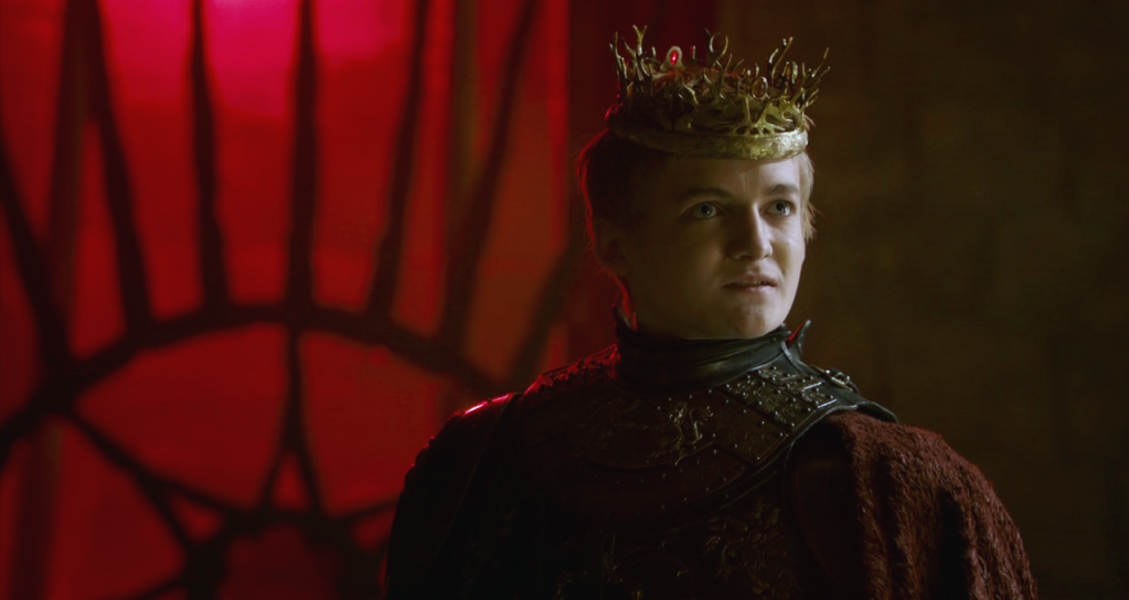Самый презираемый персонаж сериала, Джоффри — сын Джейме Ланнистера и Серсеи, но общество считает, что его настоящий отец Роберт Баратеон. Невероятно жестокий, агрессивный и склонный к садизму король-трус Семи королевств. Любитель издеваться и пытать людей. Человек, которому не знакомы слова совесть и сострадание. Смерть Джоффри наступает на собственной свадьбе.