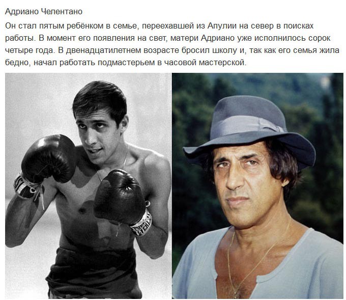 — Сначала я вообще удивлялся, что моя внешность популярна у людей, но потом привык. Знаете, в принципе в этом моей заслуги нет. Если человек постоянно снимается в кино, он просто обречен стать секс-символом, — замечает в одном из интервью российскому изданию Адриано Челентано.