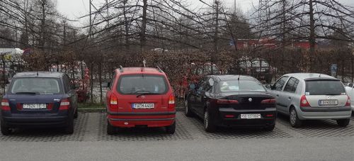 Обозначившись в Лихтенштейне, продолжили путь в Мюнхен. Проехали Австрию, остановившись перекусить. На парковке машины разных стран.