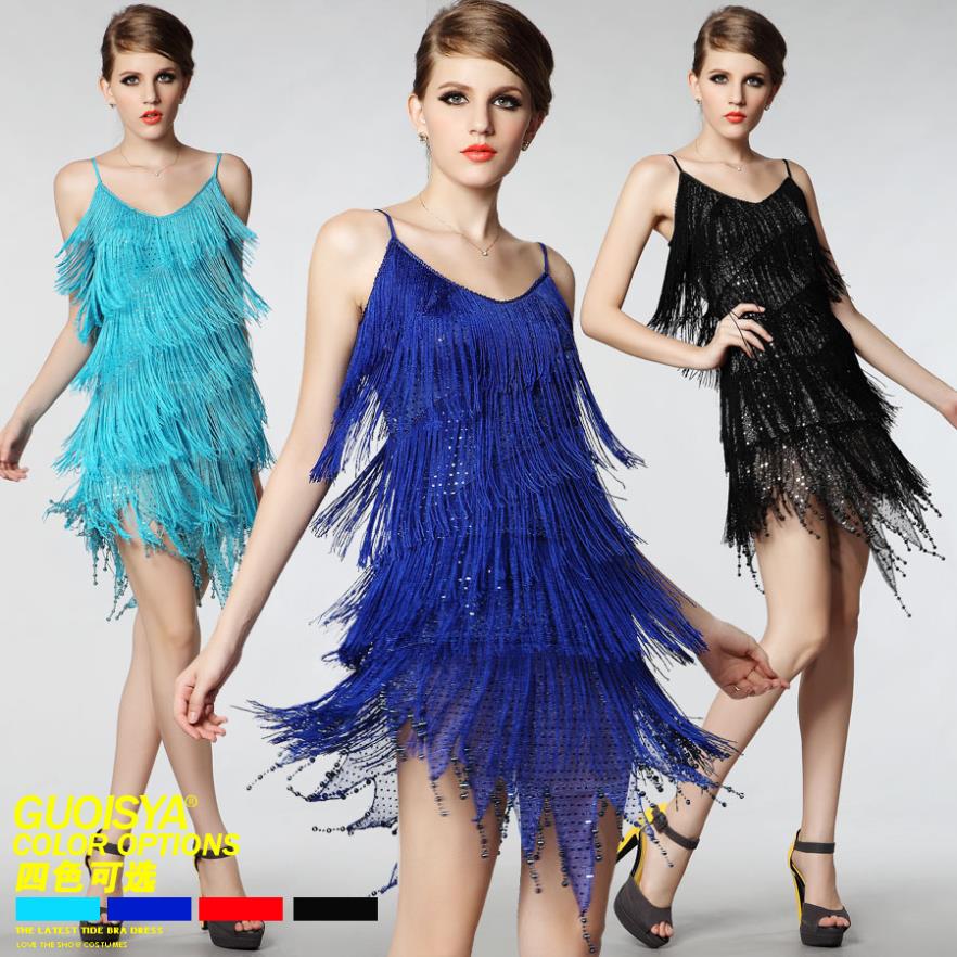 Мода на платья, которые предлагал стиль 20-х годов в женской одежде стиля джаз кардинально изменилась. Полностью поменялся акцент на линию талии – он опустился до уровня бедер. В то время как само платье больше напоминало по своей форме трубу: ровное и прямое. Подолы платьев при этом больше напоминали хвосты экзотические птиц, они были обшиты по краю низа бахромой, которая развевалась в ритм музыке во время зажигательного танца. Кроме того, особой популярностью стали также пользоваться юбки плиссе, главная задача которых проявлялась в возможности подчеркнуть бедра. Декольте перешло на область спины, где раньше находились пуговицы, которые полностью закрывали спину. Крой юбок и платьев стремительно менялся, пока не достиг области колен. Также в моду вошел ассиметричный подол, объемные банты и яркие вышивки. Популярными материалами для вечерних платьев стал бархат, шелк и атлас.