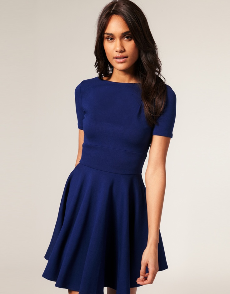 Пышная юбка скрывает пышные бедра, но так как платье короткое, ноги должны быть стройными.