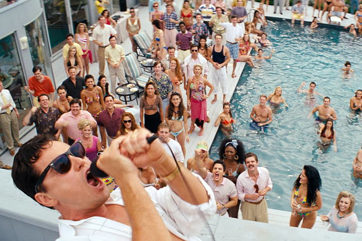 Затем мы видим большую группу брокеров, играющих в игру, в которой они бросают маленьких человечков на доску со знаком доллара вместо мишени. Затем Джордан Белфорт (Леонардо ДиКаприо) представляет себя среди тех, кто играет в эту игру. Он говорит нам, что он сын двух бухгалтеров, живущих в Бейсайде, Квинс. С тех пор, как он начал работать на Уолл-стрит, Джордан наслаждался жизнью, состоящей из бесконечных наркотиков и бесчисленных проституток по своему выбору. Видно, как он вдыхает кокаин в задницу проститутки, а затем летит на вертолете, подпрыгивая на quaaludes. Мы также видим, как он едет на своем «Феррари» и получает минет от женщины, которая оказалась его женой Наоми Лапалья (Марго Робби).