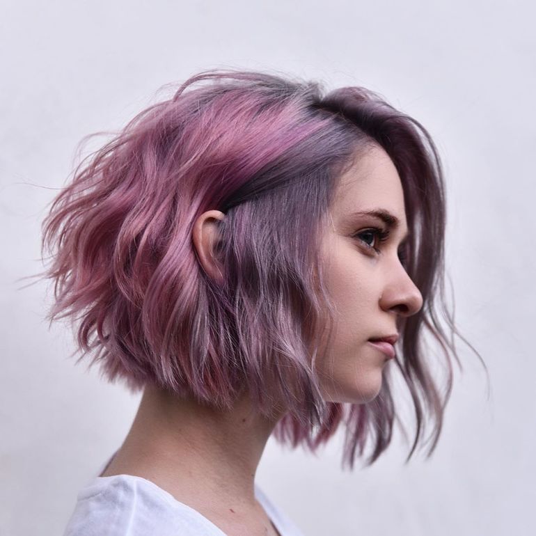 У рваного боба есть различные модификации, например, резкий перепад от короткого затылка к длинным прядям, или плавный переход от затылочной зоны к вискам. Выстригается чаще всего такой боб — лесенкой. Если захочешь этим летом быть в центре внимания, то можешь выбрить себе один или оба виска, а лучше затылок. С помощью креативного окрашивания акцентируй внимание на выбритых зонах, например, с помощью акварельных нестойких красок для волос.