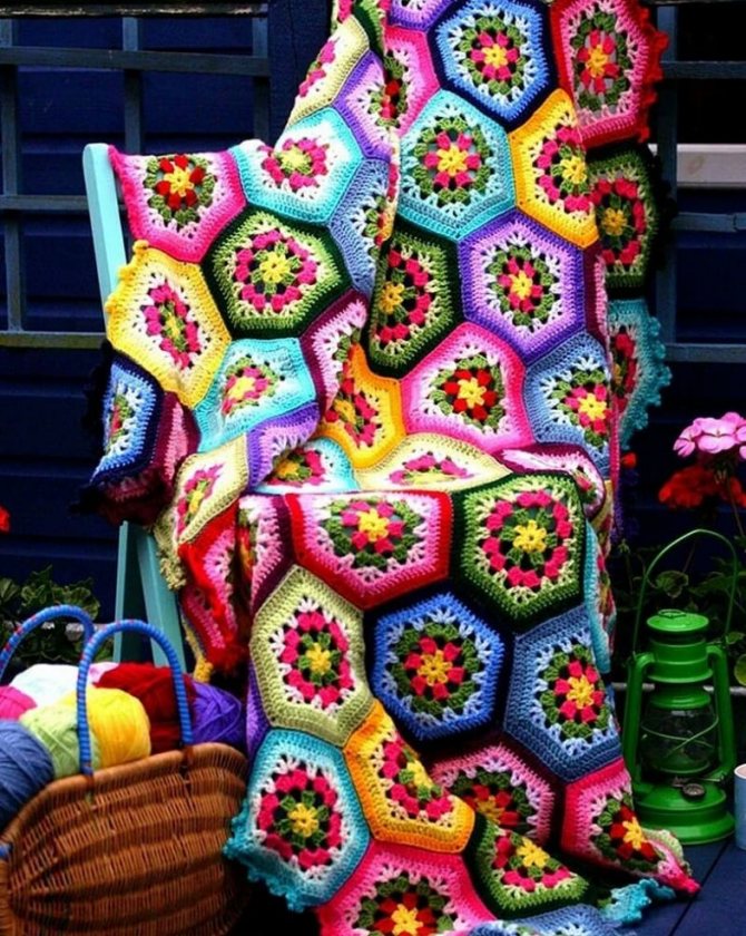Вообще, вязание крючком удобно тем, что можно работать только с небольшими фрагментами изделия, каждый раз доводя работу до конца. Психологически легче связать один квадрат сейчас, а другой чуть позднее, чем вязать огромный плед и не видеть конца работы.