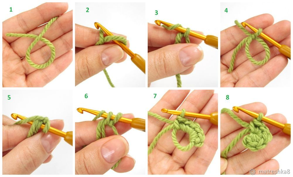 Начало вязания крючком показано на фото ниже. Частично оно затронуто в первом видео о воздушной петле.