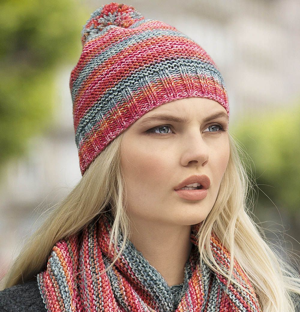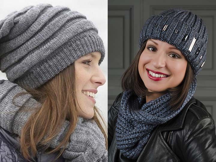 Шапки с крупной вязкой акцентируют внимание на женственности и хрупкости ее обладательницы, корректирую форму лица и создают визуальный эффект тонкой шеи.