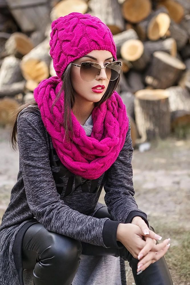 Однако, самым нашумевшим трендом последних лет являются вязаная шапка и женский снуд – широкий мягкий шарф с замкнутыми между собой краями.