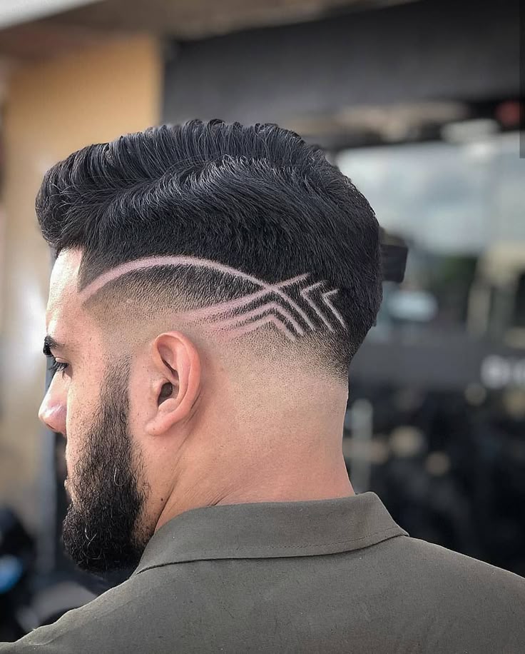 Выбривать можно как и отдельные полосы, так и рисунки из них. Именно это может рассказать о внутреннем мире человека, идущего в ногу со временем. Фото причесок с полосками можно посмотреть ниже. Этот вид стрижки позволяет экспериментировать со своей внешностью. Обычно ее предпочитают молодые люди, но если сделать одну небольшую полоску, то можно выделится и старшему поколению. Необычно будет выглядеть, если сделать плавный переход от выбритой зоны к более длинным волосам, которые находятся на макушке. Некоторые парни предпочитают делать полоску на одном виске, или же делают по две полоски с каждой стороны.