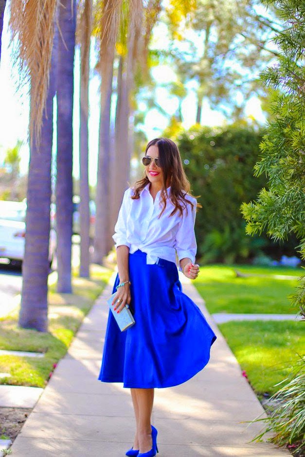 Надеть кобальтово-синюю юбку не так сложно, как вы думаете. Конечно, это смелый цвет, но из-за его врожденного качества «заявления» вы можете построить свой наряд вокруг вашей юбки… Пусть это станет фокусом вашего образа, и вы не сможете пойти не так.