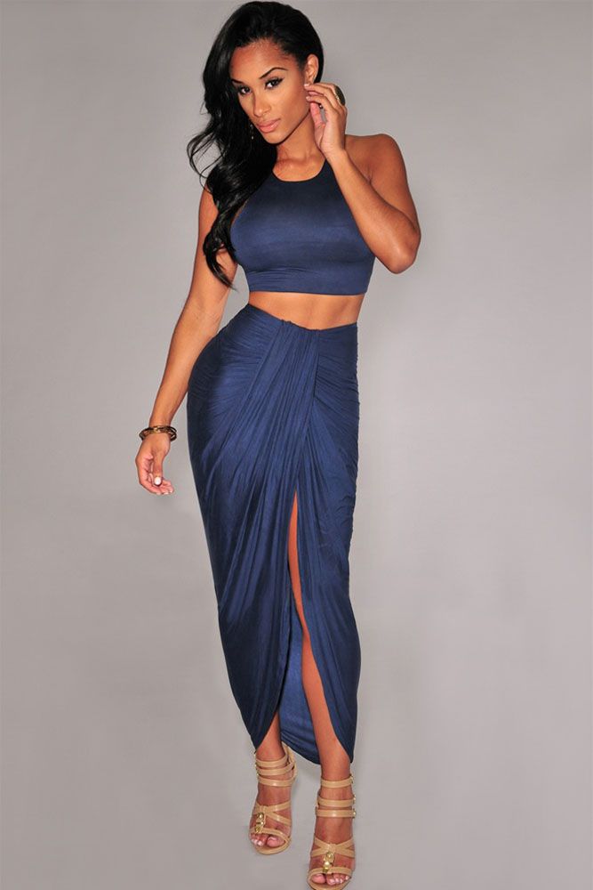 Платье, состоящие из двух отдельных частей – топа и юбки, вещь весьма практичная. Такое платье выглядит очень нарядно и неоднозначно. Верх и низ можно подобрать одной фактуры и расцветки или слегка отличающиеся друг от друга.