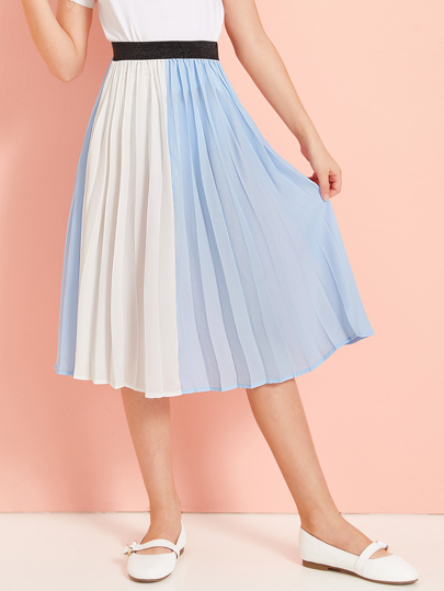 Женская одежда для девочек, двухцветные плиссированные длинные юбки для дам, эластичная Расклешенная юбка с высокой талией