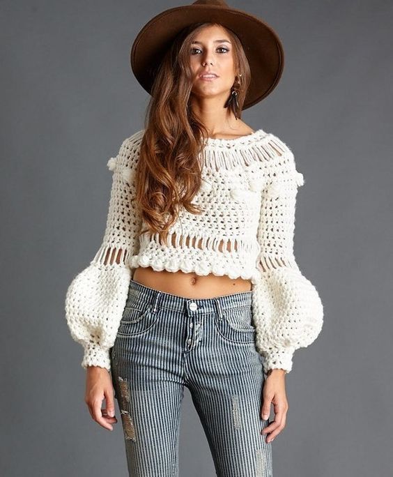 Отличная модель женского джемпера из шерсти, связанного крючком 5.5 мм. Модель отлично подойдет для рукодельниц, которые только недавно взяли в … Читать далее »