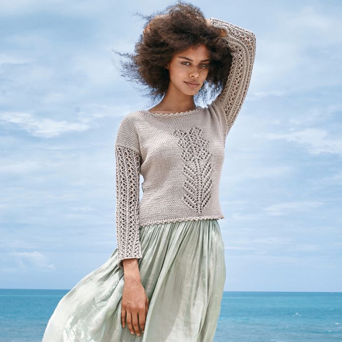 Чудесная модель женского пуловера с рукавом 3/4, связанного из органического хлопка крючком 3 мм. Все детали пуловера вяжутся раздельно рядами … Читать далее »