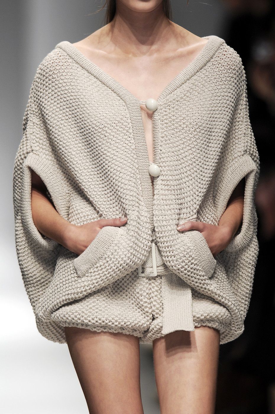 С этого момента началось победное шествие искусства вязания. Высокая мода взяла на вооружение этот способ создания красивых и стильных вещей, начиная с 60-х годов прошлого века, когда появились тысячи вязальных схем, а формы и типы пряжи достигли редкостного многообразия.