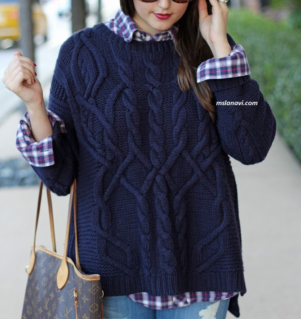 Если Вам все же очень нравится крупная вязка, и приобрести такую одежду не смотря ни на что желание не пропадает, максимально сдержать объем поможет правильный узор, расположенный исключительно вертикально. Как известно, горизонтальные узоры не рекомендуются при широкой фигуре.