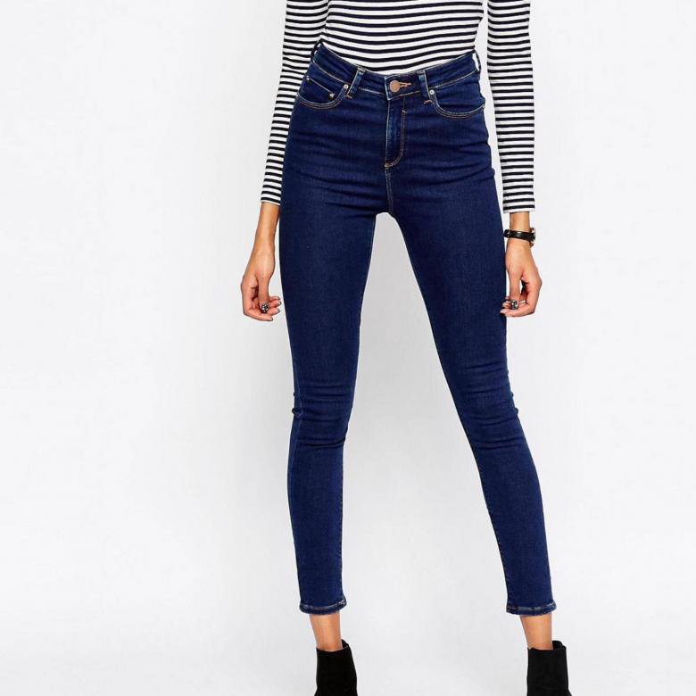 Синие джинсы с завышенной талией