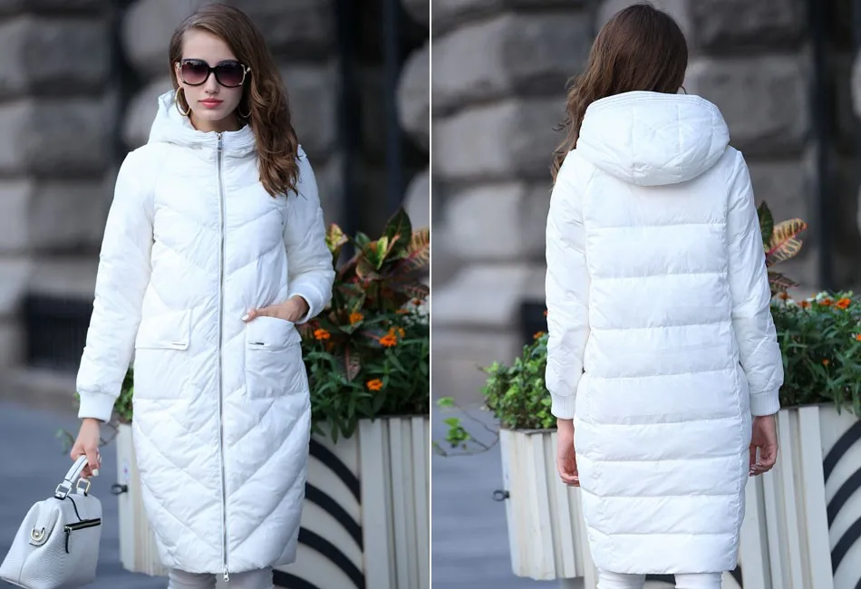 Женский длинный белый пуховик выглядит роскошно. Между тем, он категорически не подходит для грязной и слякотной погоды, поскольку при таких условиях его подол практически мгновенно запачкается и станет совершенно не привлекательным. Чтобы этого избежать, стилисты крайне редко выпускают изделия длиной в пол, подавляющее большинство подобных моделей достигает щиколотки.