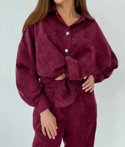 Braune Cordärmeljacke mit vier Knöpfen.![]()