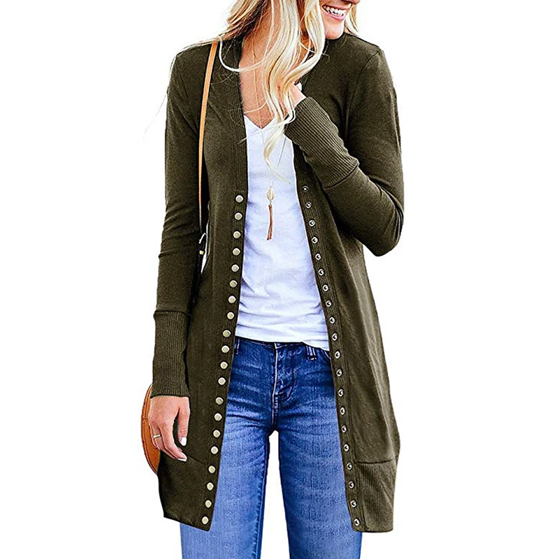 Отсутствие пуговиц обеспечивает свободу движения, придает легкость и мягкость женскому образу. Особенно удобен и красив вязаный кардиган без пуговиц, который способен создать роскошный и романтичный лук. Трикотажное удлиненное изделие в меру облегает силуэт и подчеркивает индивидуальность внешнего облика. Плотные шерстяные кардиганы-пальто длиной до колена украшают силуэт и надежно защищают от холода. Демисезонные изделия из комбинированных тканей (кожи, неопрена, вискозы) выглядят необычно и вносят экспрессию в женский образ.
