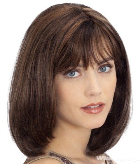 Этот боб средней длины обеспечивает естественные каскадные пряди, заметные нижние слои и выразительную челку.