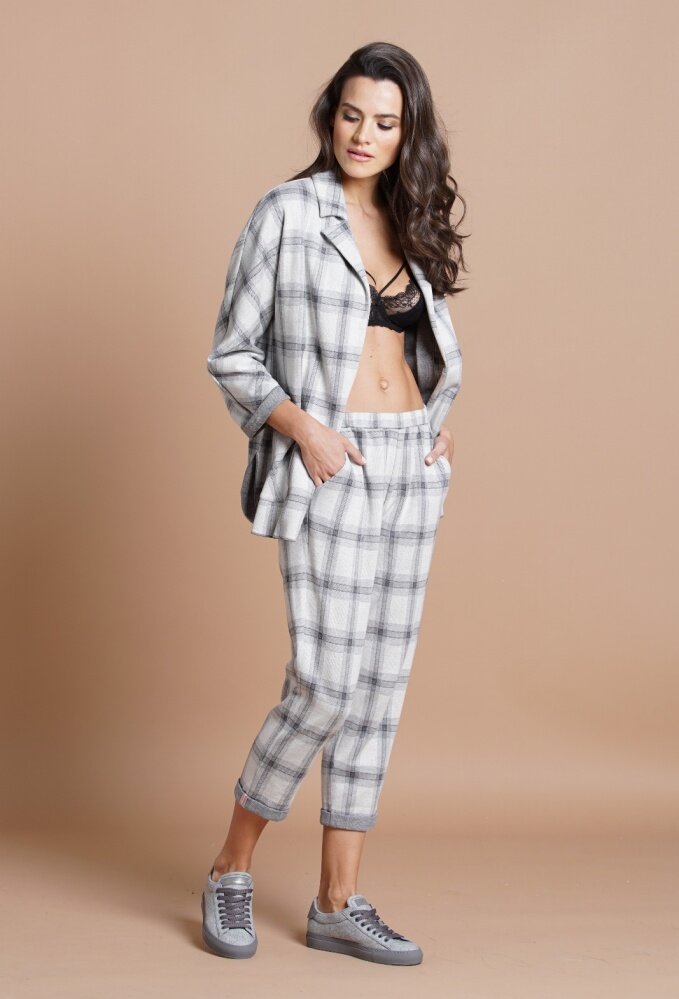 - Курительный пиджак в клетку. Данная модель напоминает мужской смокинг. Широкий крой и бархатная текстура делают этот пиджак необычным и привлекательным. Он прекрасен в сочетании с любыми вещами разных фасонов.