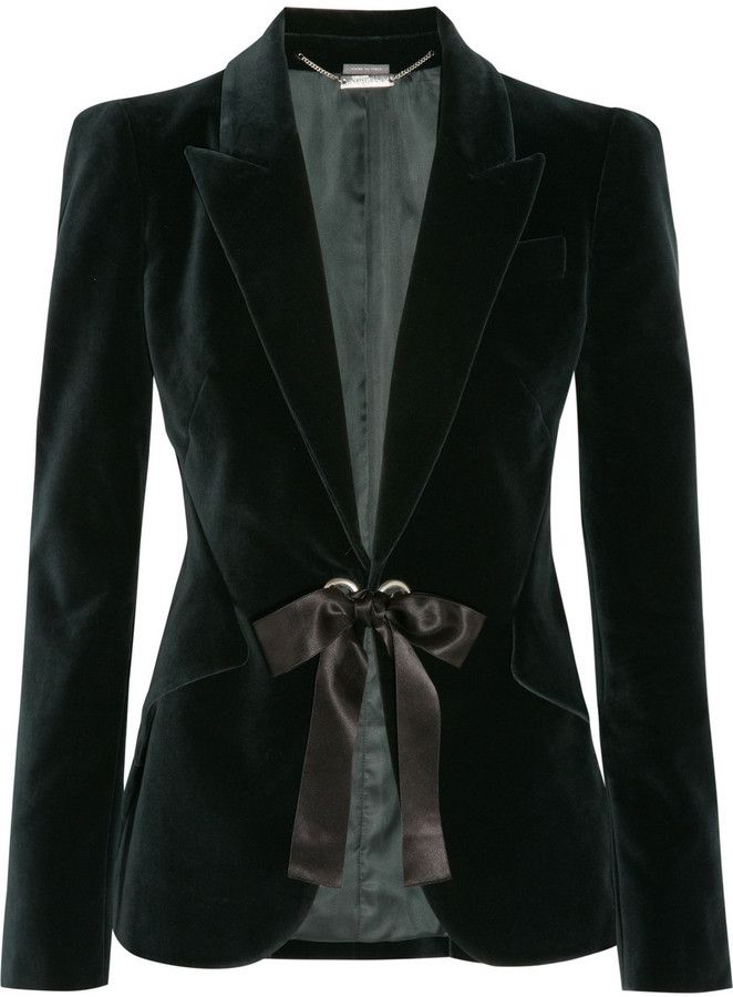 Стильные девушки, предпочтут новую классику. Удлиненный жакет из бархата с атласными отворотами и лацканами.