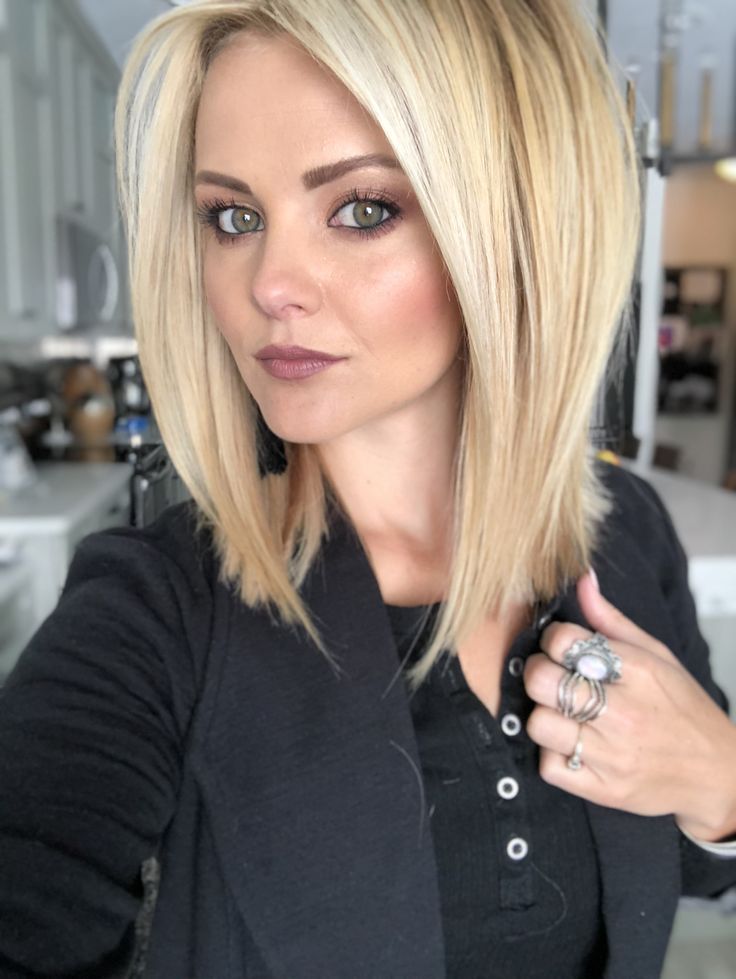 Одним из преимуществ волос средней длины является то, что вы можете легко разделить их посередине, не делая их тусклыми и плоскими. Вы можете дополнить прическу прохладным и свежим цветом, чтобы осветлить волосы.