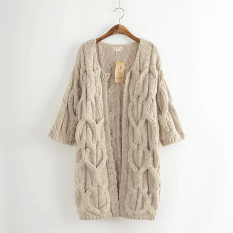 Актуальны и удлиненные вязаные кардиганы, повторяющие силуэт тела. Но выбирая подобную модель рекомендуем уделить внимание качеству, фактуре пряжи и рисунку. Изделие из грубой толстой шерсти с обилием вязаного узора будет зрительно сильно утяжелять образ.