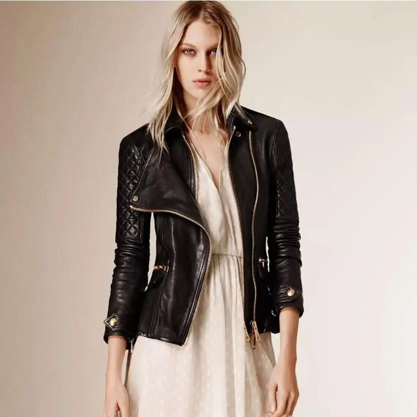 Дополнением кожаных курток часто служат сверкающие металлические молнии и зауженные рукава для придания образу строгого «милитаризированного» тона.