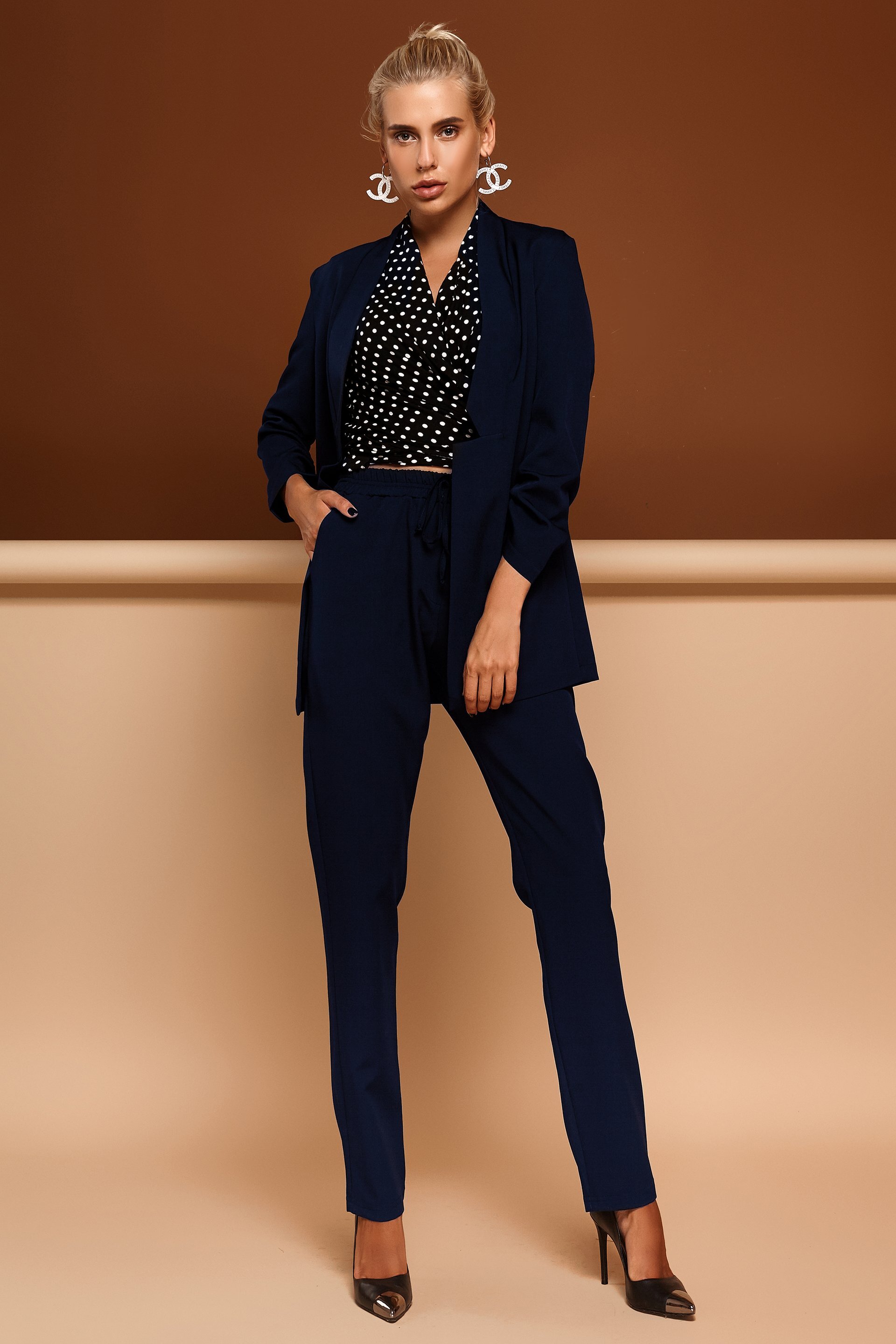Например, воротник-шалька, который привносит женственность в классический стиль, Или оригинальная застежка и разрезы на рукавах, придающие дополнительную свободу и динамику всему комплекту.