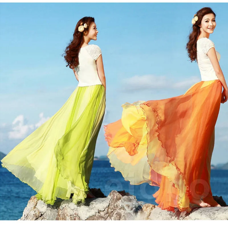 LTS Высокая зеленая многоярусная длинная юбка с цветочным принтом