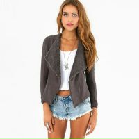Молодые стройные девушки могут смело носить замшевый пиджак с короткими шортами.