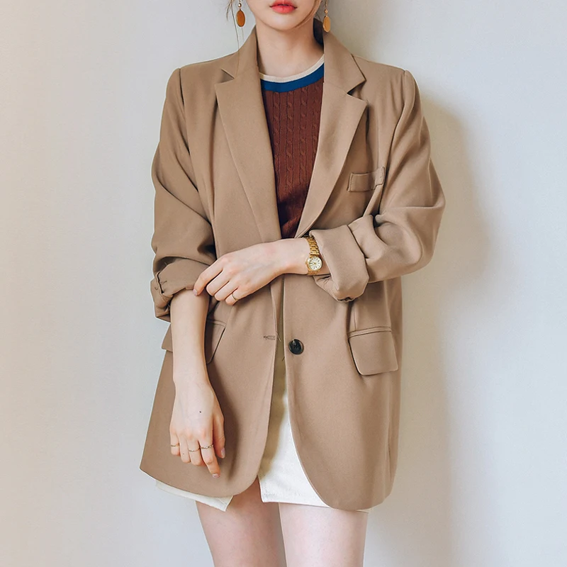 - женский пиджак оверсайз может содержать рукава традиционной длины или с подворотами;