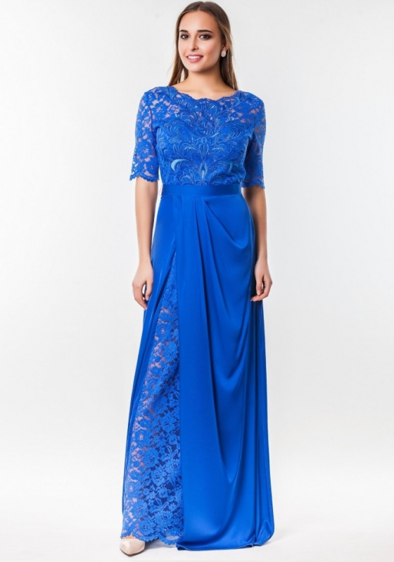 Вечернее платье в пол с кружевным верхом и атласной юбкой (р.