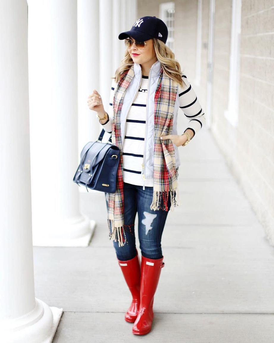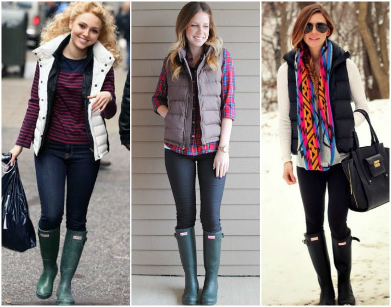 Беспроигрышный вариант – это спортивная жилетка с узкими джинсами-дудочками, спортивным костюмом, нестрогой рубашкой. В качестве обуви подойдут кеды, кроссовки, замшевые и тканевые сапожки, ботинки на высокой платформе, угги, унты и даже цветные резиновые сапоги, которые в новом сезоне произвели настоящий фурор.