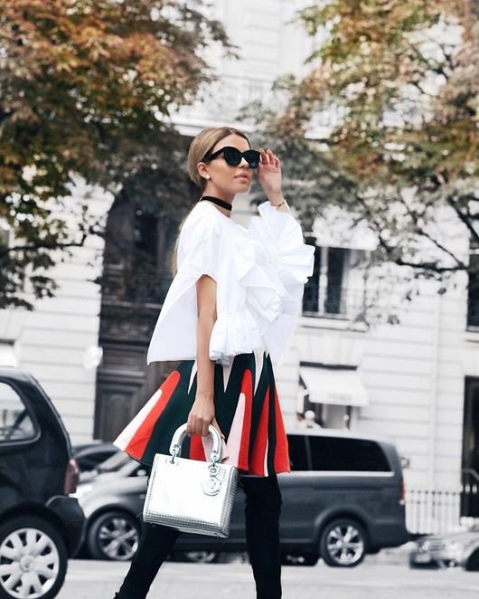 И тогда образ «заговорит», см. фото слева и справа (обратите внимание на прекрасное сочетание принтов юбки и клатча)