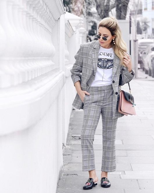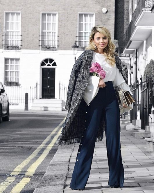 Ана Джимено Бругада в брючном костюме и полосатом свитере. С — стиль!Ана Джимено Бругада часто использует комбинации темных и светлых оттенков одного и того же цвета. Получается эффектно, см. фото: