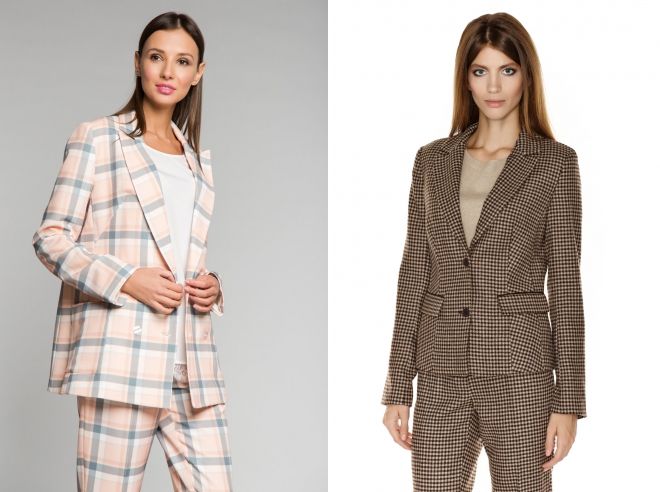 Уже несколько сезонов подряд на вершине популярности располагается женский бежевый пиджак в клетку, который выглядит очень стильно и может иметь самые разные фасоны. Модели с клетчатым принтом идеально подходят для деловых женщин, поскольку подчеркивают строгость и элегантность образа, однако, могут с легкостью вписаться и в повседневный look. В зависимости от размера принта и цветовой гаммы изделия каждая барышня может выбрать следующие варианты: